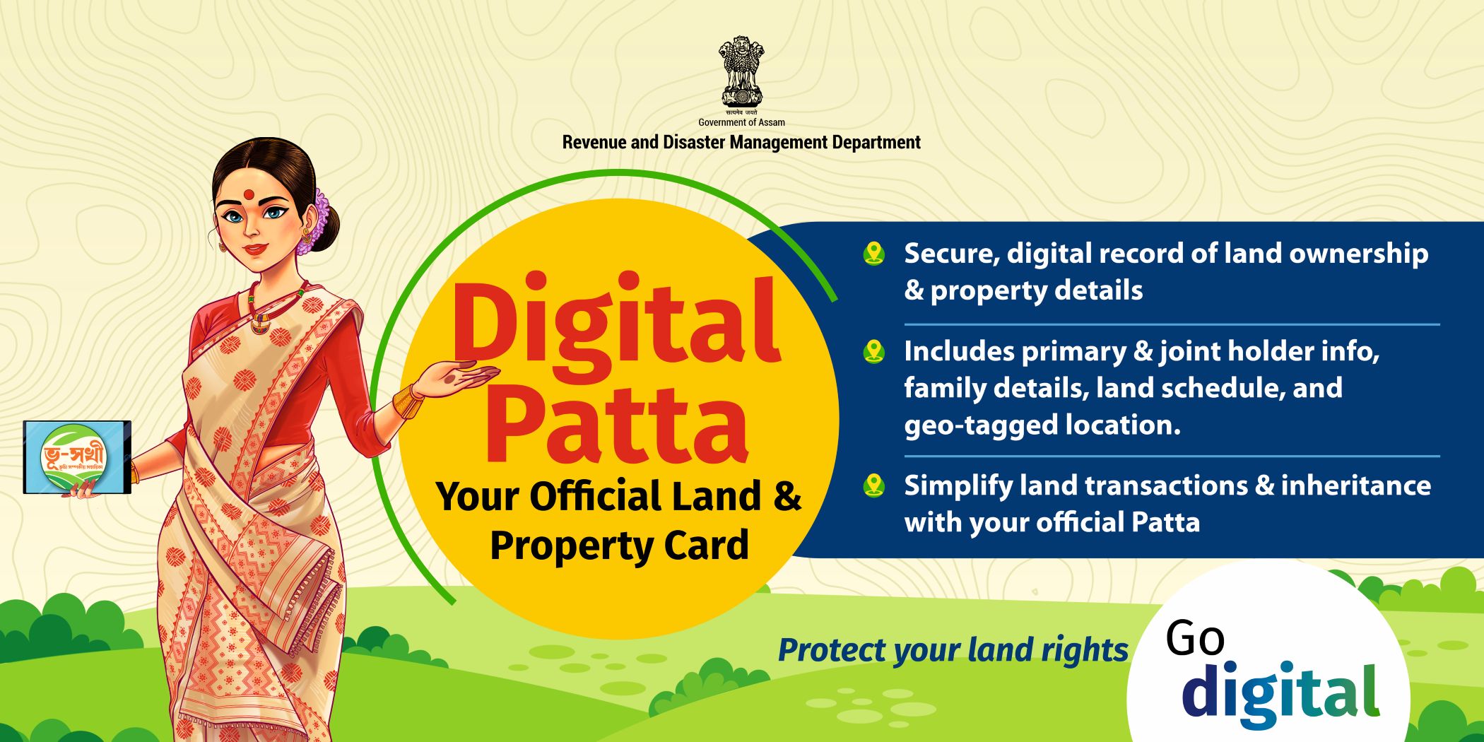 This service enables the issuance of a Digital Patta by integrating verified pattadar details, land attributes and boundaries using drone imagery and ULPIN, Aadhaar, mobile and address seeding, geotagged property information, and encumbrance and revenue linkage wherever applicable. The digitally generated patta shall carry full legal validity and shall be treated as a valid Record-of-Right for all official purposes.
